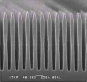 Fused silica 2um deep 0.15um wide trenches